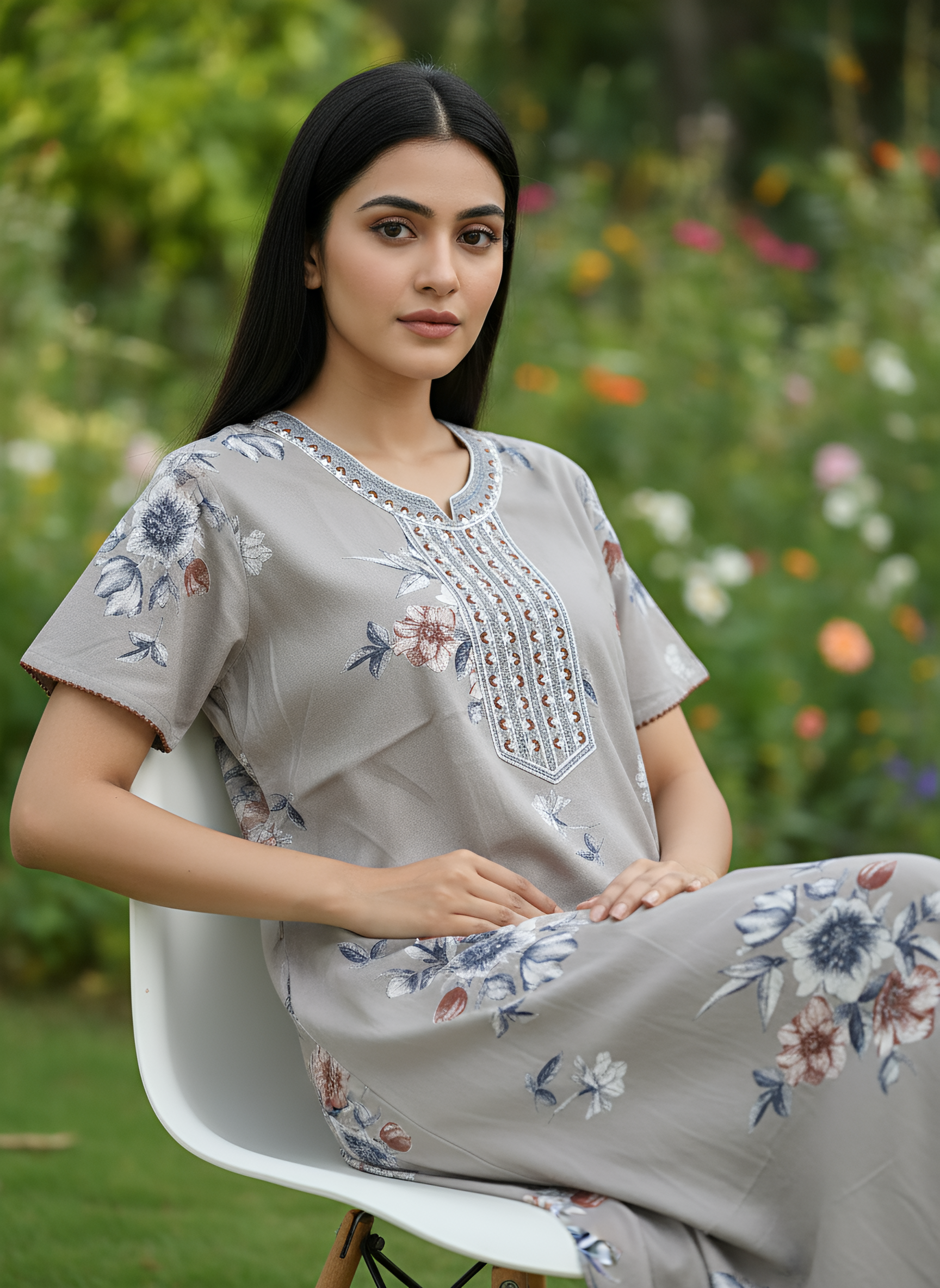 Alpine Cotton Embroidery Nighty Crafted from premium cotton, this Alpine nighty features delicate embroidery detailing that elevates everyday comfort. The breathable fabric ensures all-night ease, while the thoughtful embroidered design adds understated elegance to your sleepwear collection. Perfect for those who appreciate quality craftsmanship and refined simplicity in their nightwear essentials.